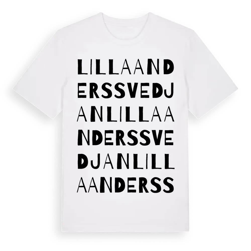 Lilla Anderssvedjan ordlek t-shirt är inspirerad av Lilla Anderssvedjan i Stockholms län, Sverige. Tröjan är designad för dig som har en speciell koppling till platsen – oavsett om du bor här, har rötterna här eller bara älskar Lilla Anderssvedjan.