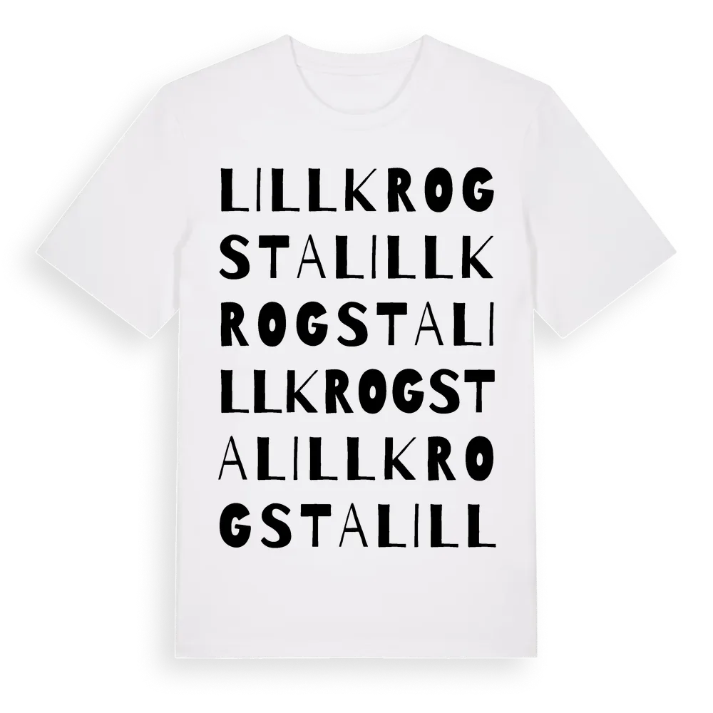 Lillkrogsta ordlek t-shirt är inspirerad av Lillkrogsta i Stockholms län, Sverige. Tröjan är designad för dig som har en speciell koppling till platsen – oavsett om du bor här, har rötterna här eller bara älskar Lillkrogsta.