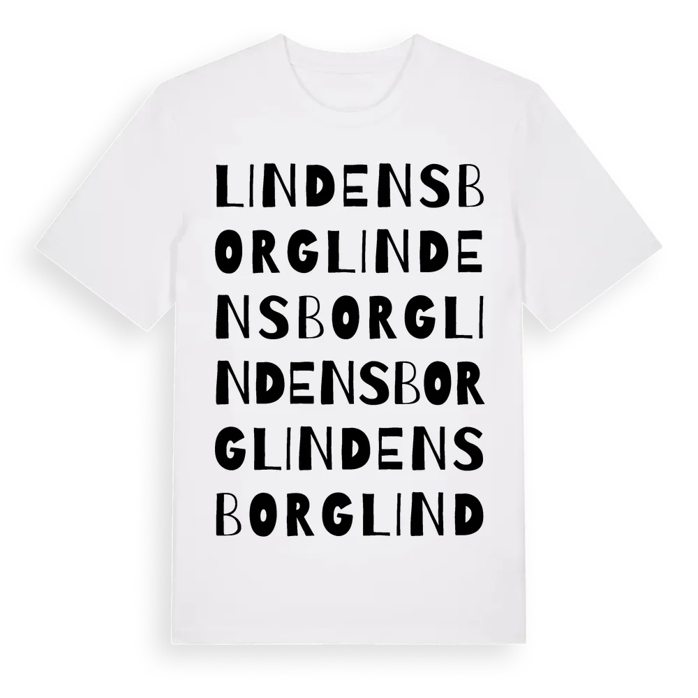 Lindensborg ordlek t-shirt är inspirerad av Lindensborg i Stockholms län, Sverige. Tröjan är designad för dig som har en speciell koppling till platsen – oavsett om du bor här, har rötterna här eller bara älskar Lindensborg.