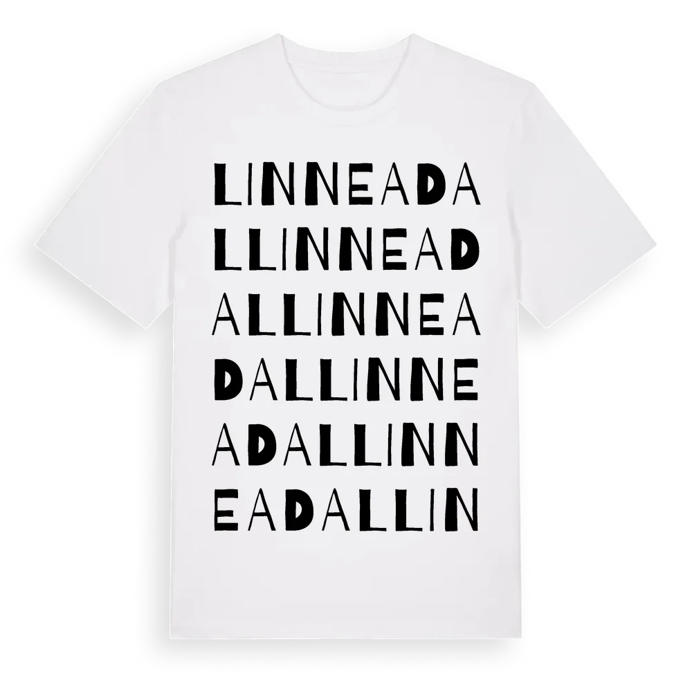 Linneadal ordlek t-shirt är inspirerad av Linneadal i Stockholms län, Sverige. Tröjan är designad för dig som har en speciell koppling till platsen – oavsett om du bor här, har rötterna här eller bara älskar Linneadal.