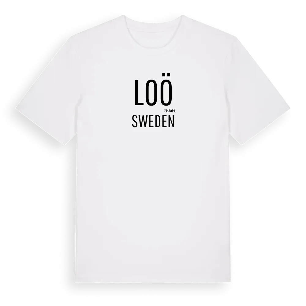 Loö i Sverige – ett rakt och tydligt utrop om var du hör hemma. Inget mer behövs. Premium bomull, unisex – från byn Loö i Stockholms län.