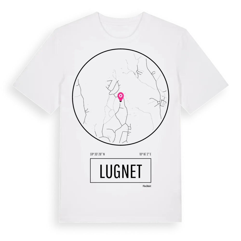 Lugnet t-shirt är inspirerad av byn Lugnet i Stockholms län, Sverige. Tröjan är designad för dig som har en speciell koppling till platsen – oavsett om du bor här, har rötterna här eller bara älskar Lugnet.