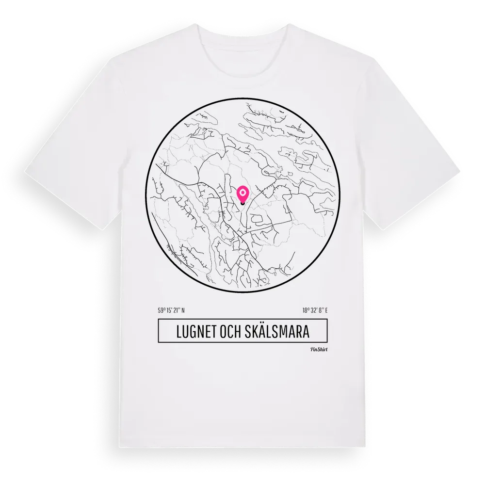 Lugnet Och Skälsmara t-shirt är inspirerad av byn Lugnet Och Skälsmara i Stockholms län, Sverige. Tröjan är designad för dig som har en speciell koppling till platsen – oavsett om du bor här, har rötterna här eller bara älskar Lugnet Och Skälsmara.