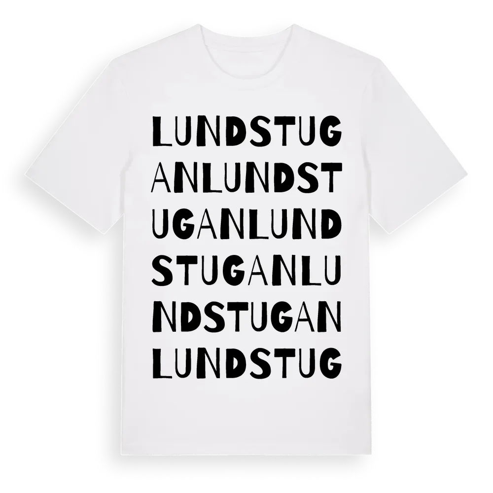 Lundstugan ordlek t-shirt är inspirerad av Lundstugan i Stockholms län, Sverige. Tröjan är designad för dig som har en speciell koppling till platsen – oavsett om du bor här, har rötterna här eller bara älskar Lundstugan.