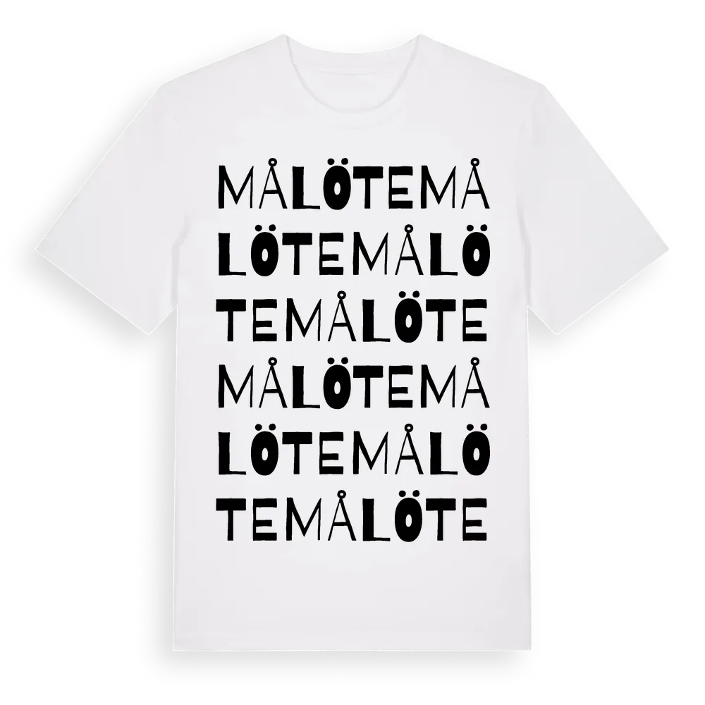 Målöte ordlek t-shirt är inspirerad av Målöte i Stockholms län, Sverige. Tröjan är designad för dig som har en speciell koppling till platsen – oavsett om du bor här, har rötterna här eller bara älskar Målöte.