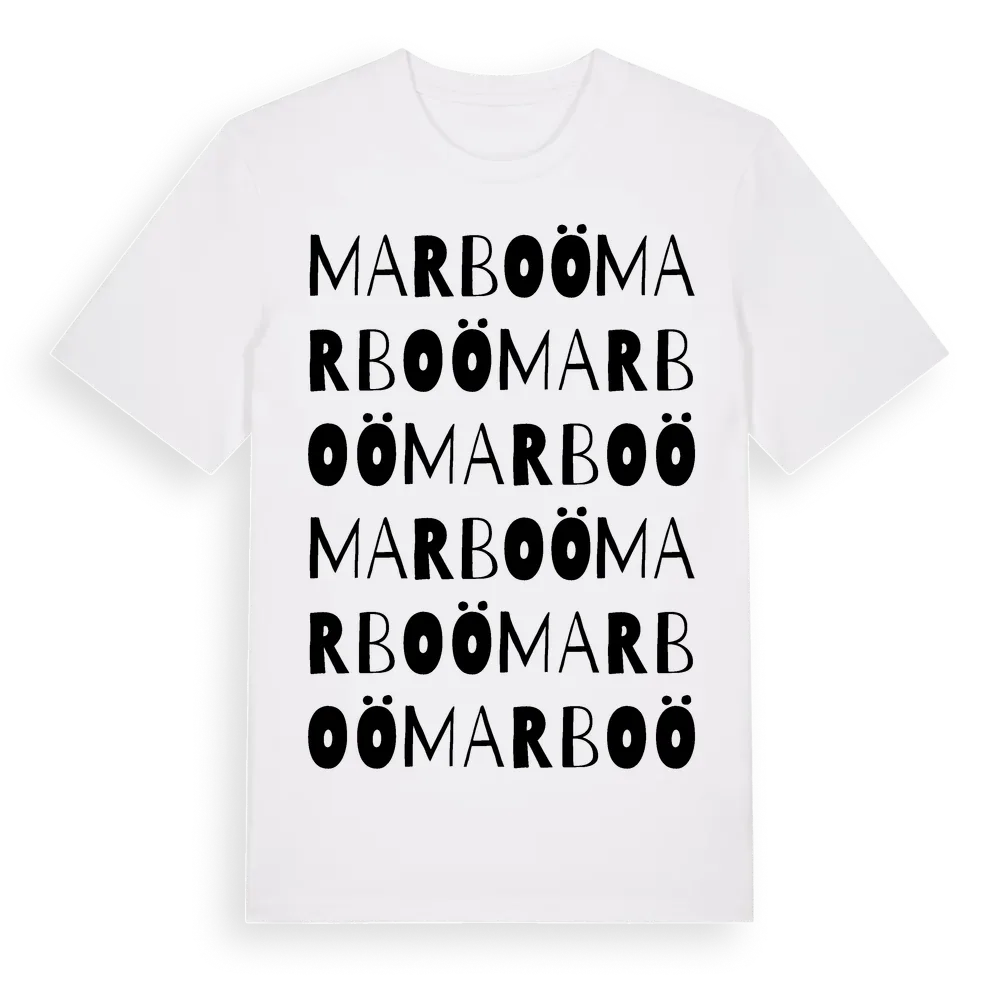 Marboö ordlek t-shirt är inspirerad av ön Marboö i Stockholms län, Sverige. Tröjan är designad för dig som har en speciell koppling till platsen – oavsett om du bor här, har rötterna här eller bara älskar Marboö.