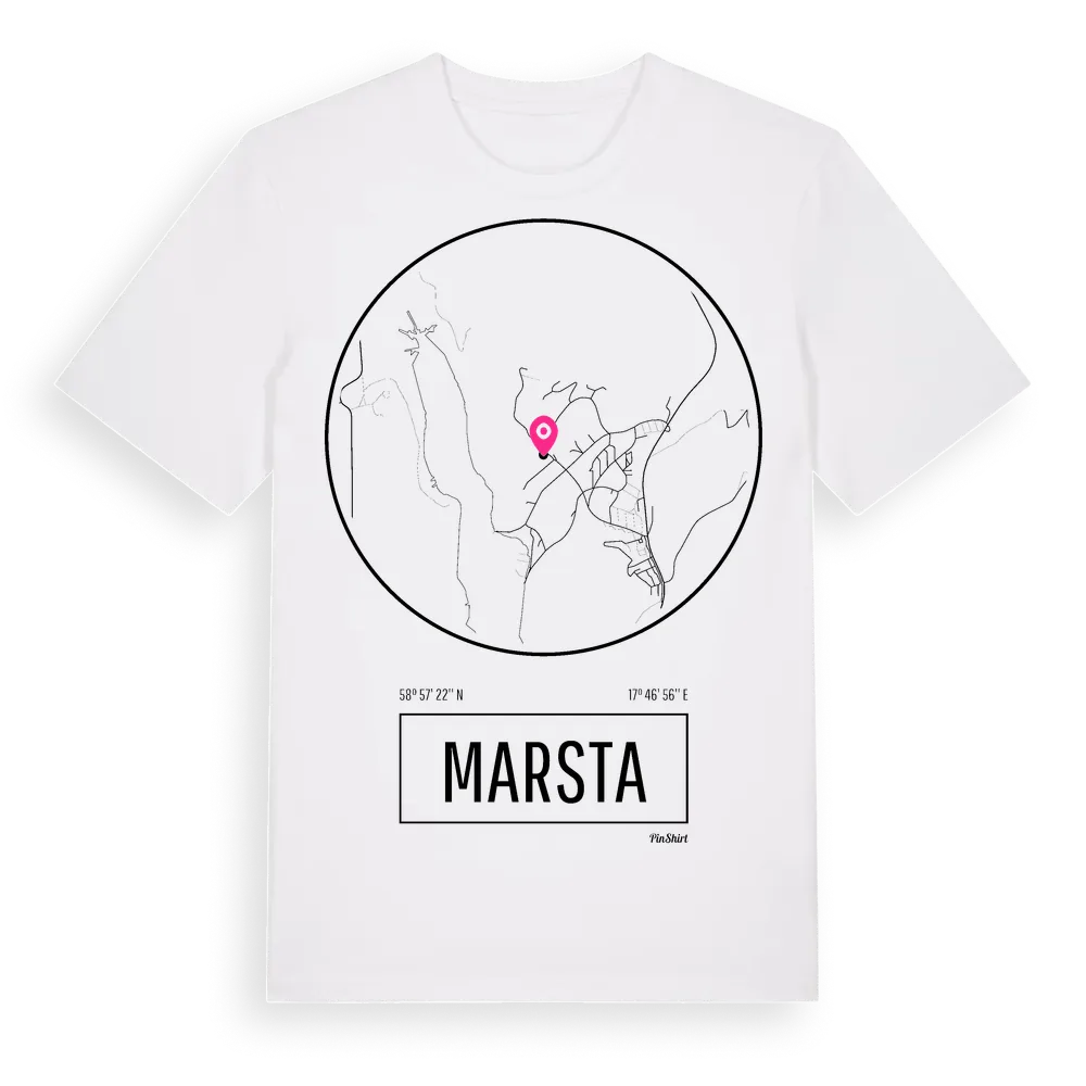 Marsta t-shirt är inspirerad av stadsdelen Marsta i Stockholms län, Sverige. Tröjan är designad för dig som har en speciell koppling till platsen – oavsett om du bor här, har rötterna här eller bara älskar Marsta.