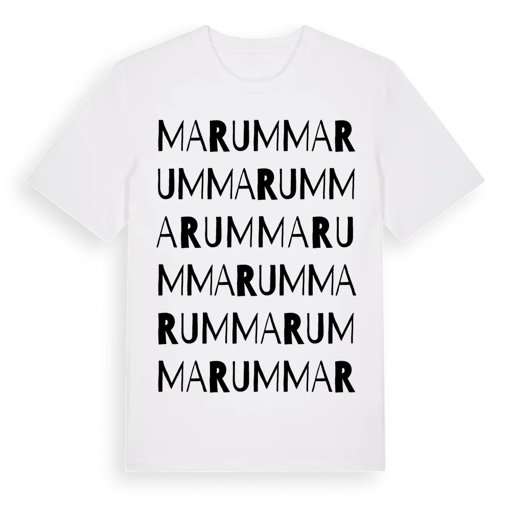 Marum ordlek t-shirt är inspirerad av byn Marum i Stockholms län, Sverige. Tröjan är designad för dig som har en speciell koppling till platsen – oavsett om du bor här, har rötterna här eller bara älskar Marum.
