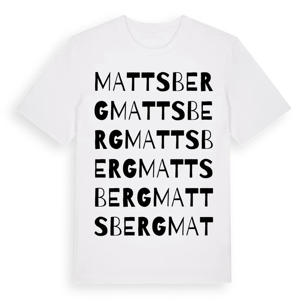 Mattsberg ordlek t-shirt är inspirerad av Mattsberg i Stockholms län, Sverige. Tröjan är designad för dig som har en speciell koppling till platsen – oavsett om du bor här, har rötterna här eller bara älskar Mattsberg.