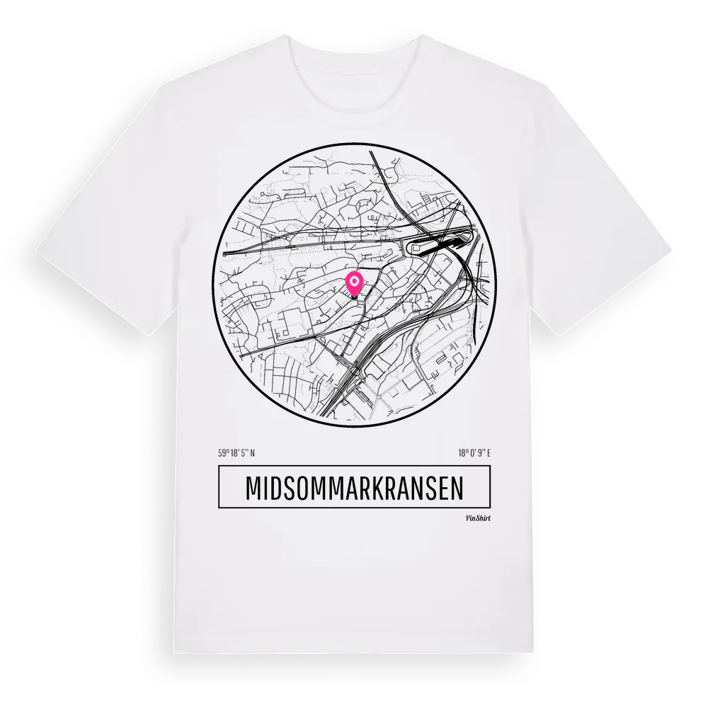 Midsommarkransen t-shirt är inspirerad av stadsdelen Midsommarkransen i Stockholms län, Sverige. Tröjan är designad för dig som har en speciell koppling till platsen – oavsett om du bor här, har rötterna här eller bara älskar Midsommarkransen.