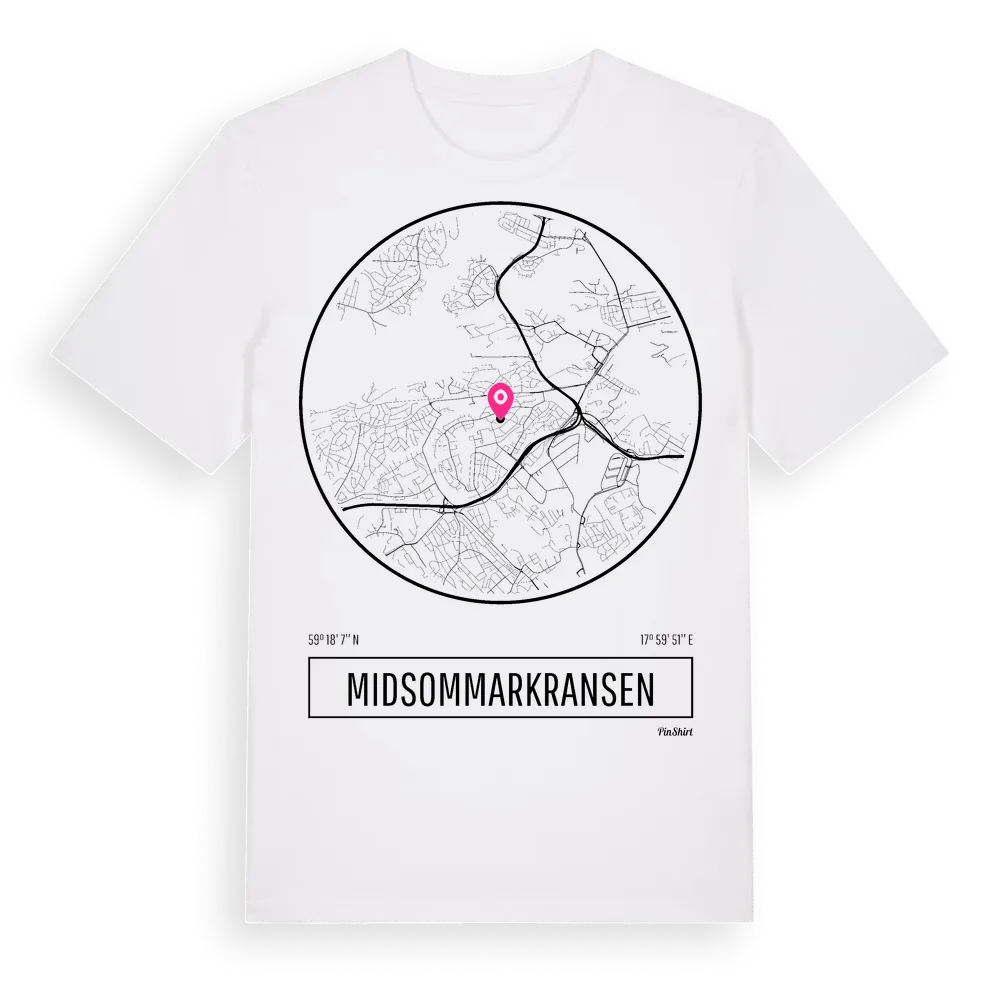 Midsommarkransen t-shirt är inspirerad av stadsdelen Midsommarkransen i Stockholms län, Sverige. Tröjan är designad för dig som har en speciell koppling till platsen – oavsett om du bor här, har rötterna här eller bara älskar Midsommarkransen.