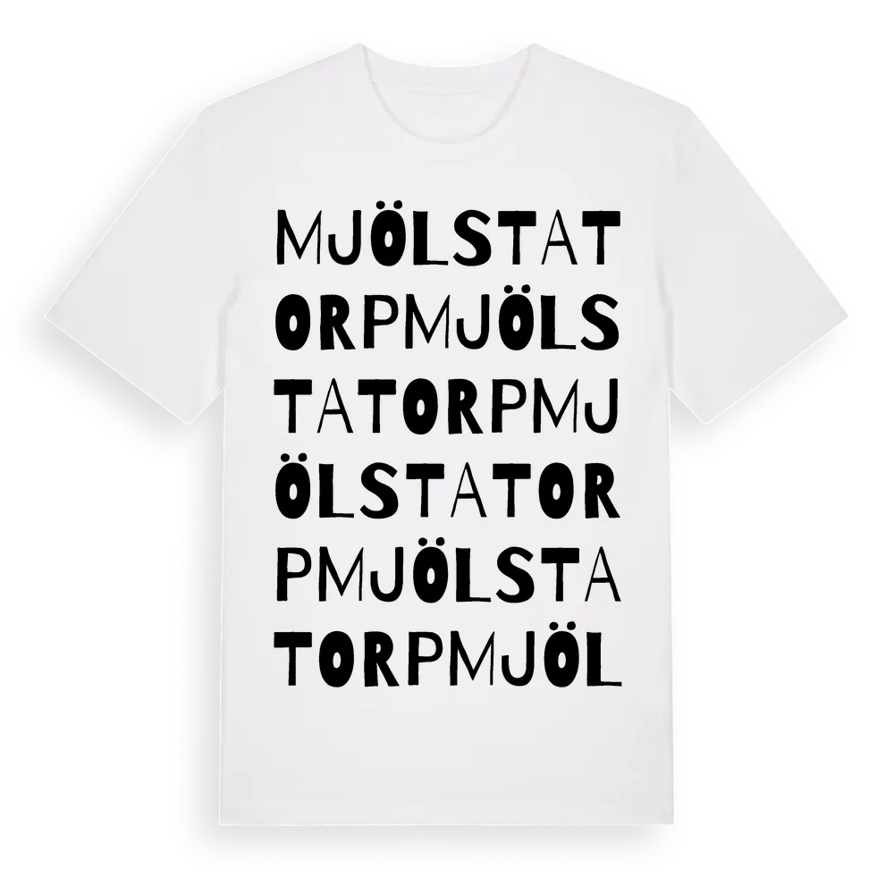 Mjölstatorp ordlek t-shirt är inspirerad av Mjölstatorp i Stockholms län, Sverige. Tröjan är designad för dig som har en speciell koppling till platsen – oavsett om du bor här, har rötterna här eller bara älskar Mjölstatorp.