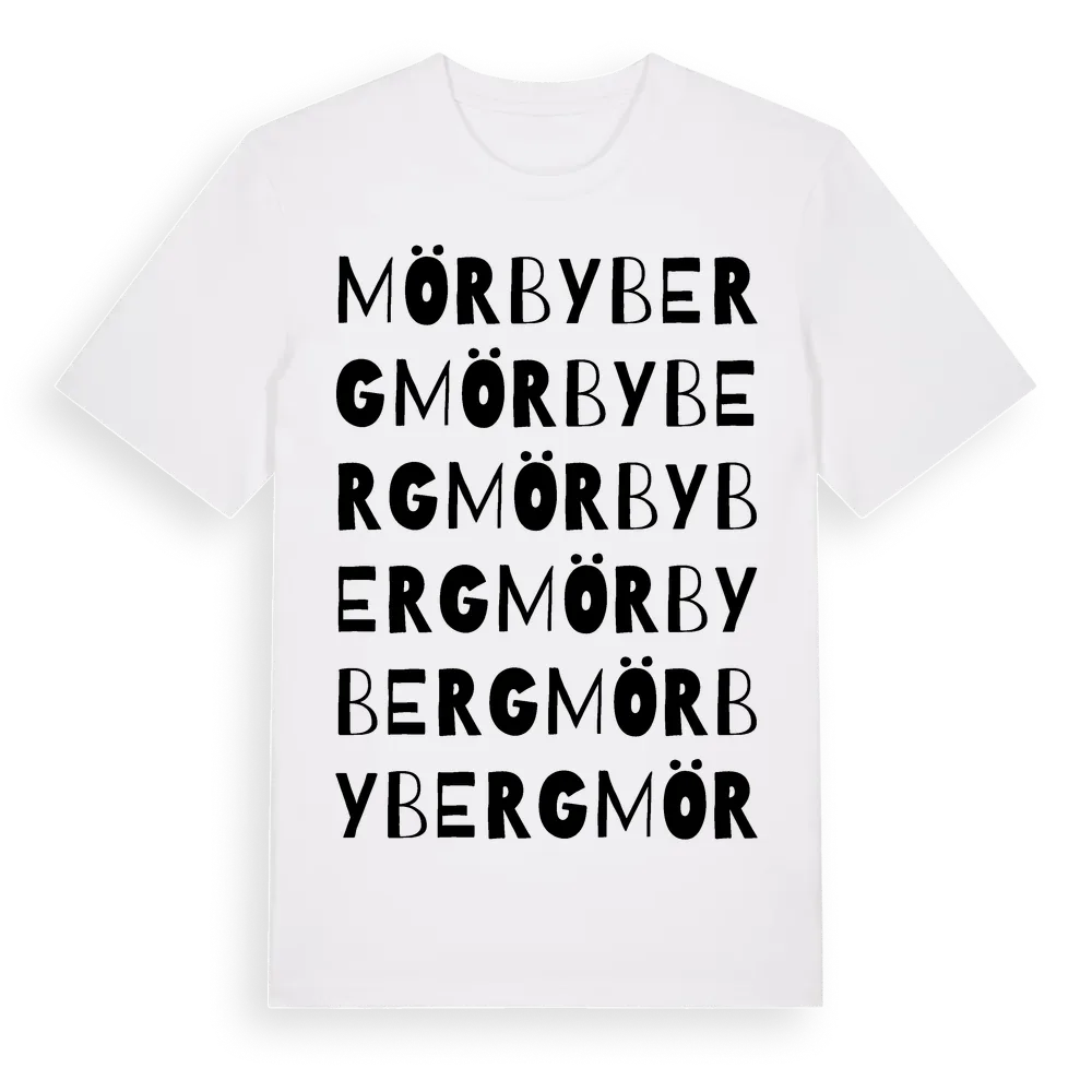 Mörbyberg ordlek t-shirt är inspirerad av Mörbyberg i Stockholms län, Sverige. Tröjan är designad för dig som har en speciell koppling till platsen – oavsett om du bor här, har rötterna här eller bara älskar Mörbyberg.