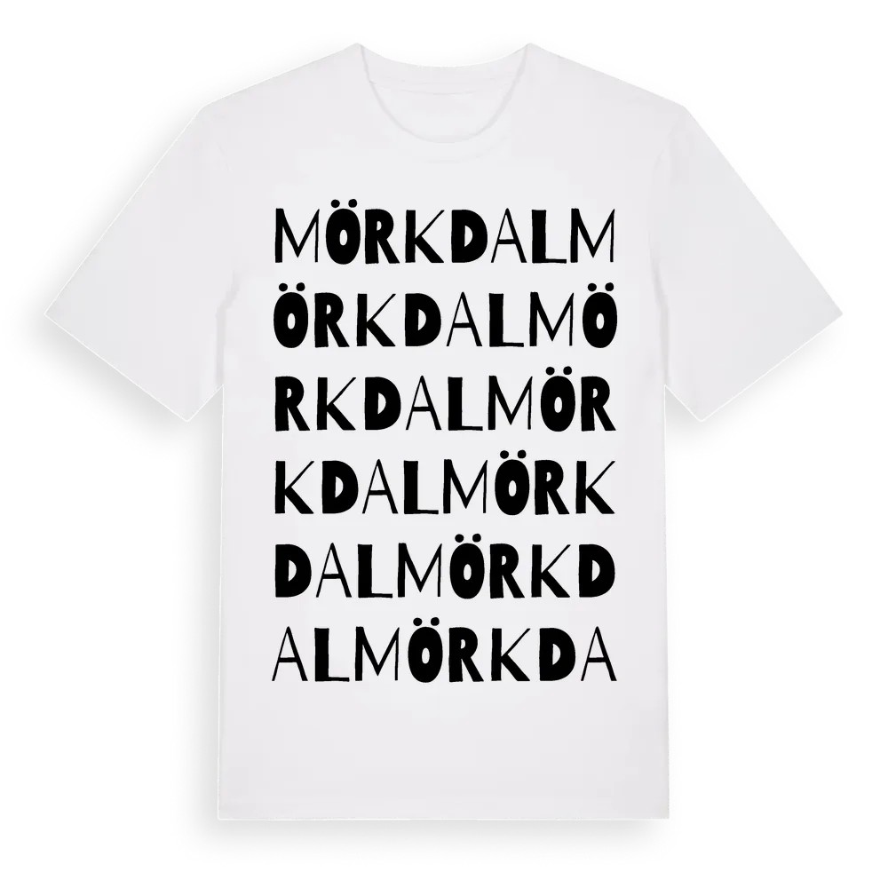 Mörkdal ordlek t-shirt är inspirerad av Mörkdal i Stockholms län, Sverige. Tröjan är designad för dig som har en speciell koppling till platsen – oavsett om du bor här, har rötterna här eller bara älskar Mörkdal.