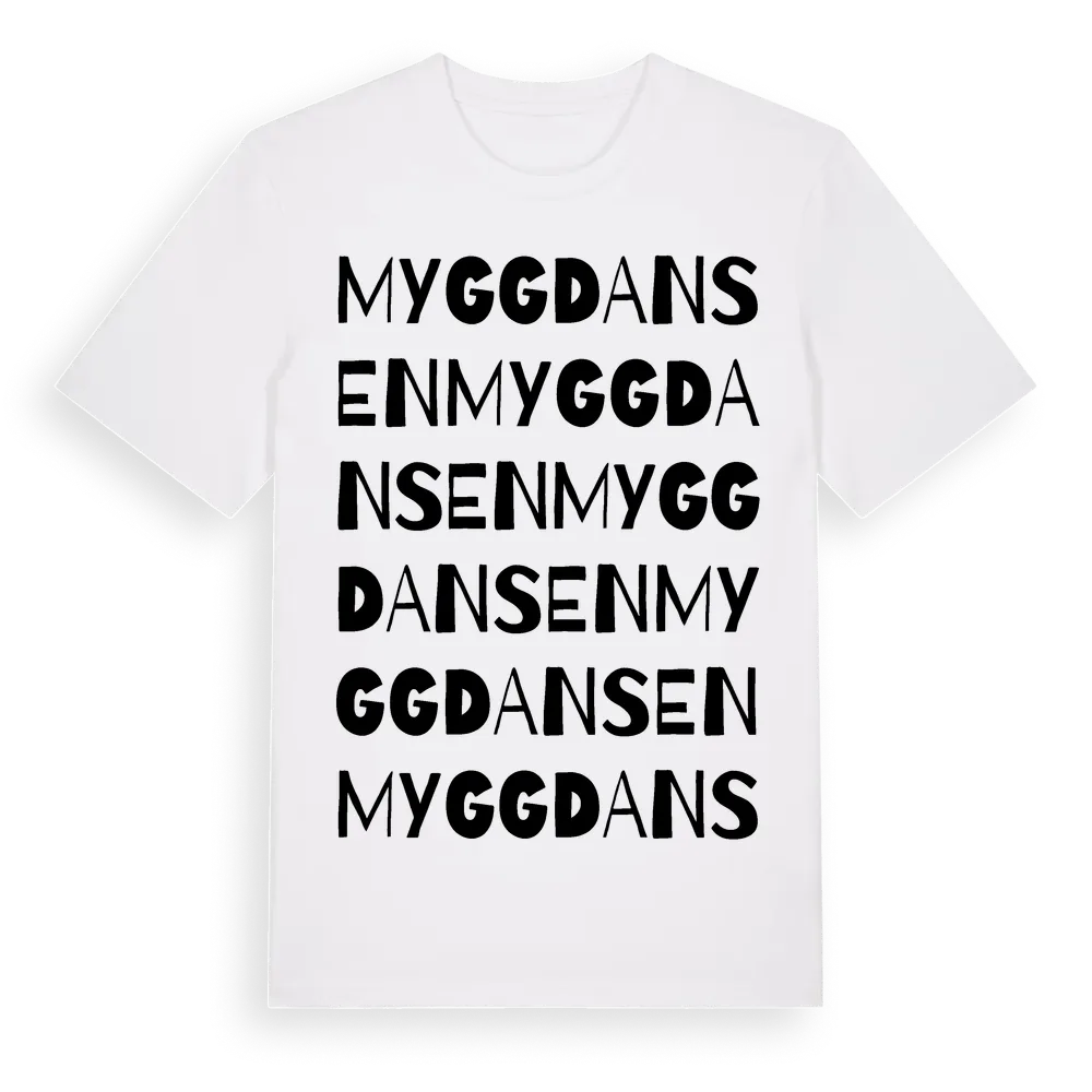 Myggdansen ordlek t-shirt är inspirerad av byn Myggdansen i Stockholms län, Sverige. Tröjan är designad för dig som har en speciell koppling till platsen – oavsett om du bor här, har rötterna här eller bara älskar Myggdansen.