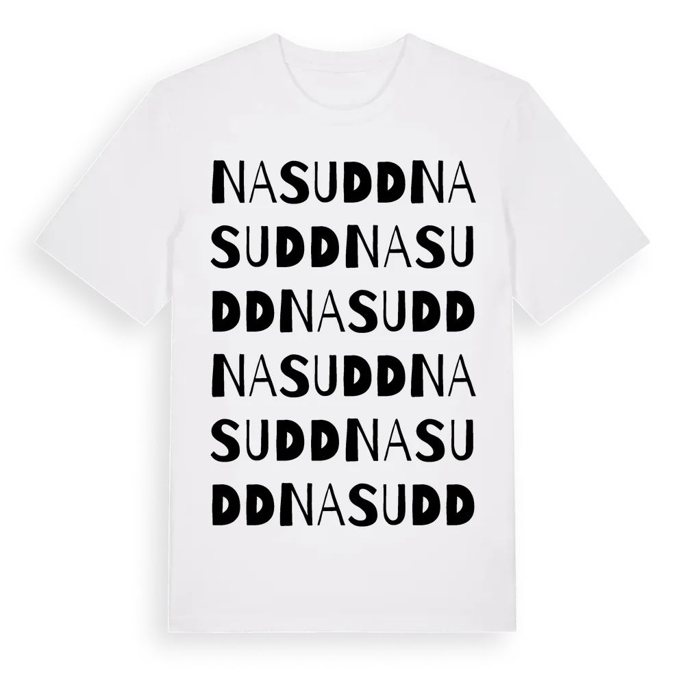 Nasudd ordlek t-shirt är inspirerad av Nasudd i Stockholms län, Sverige. Tröjan är designad för dig som har en speciell koppling till platsen – oavsett om du bor här, har rötterna här eller bara älskar Nasudd.