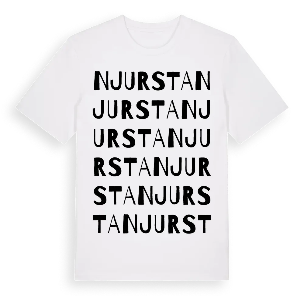Njursta ordlek t-shirt är inspirerad av stadsdelen Njursta i Stockholms län, Sverige. Tröjan är designad för dig som har en speciell koppling till platsen – oavsett om du bor här, har rötterna här eller bara älskar Njursta.