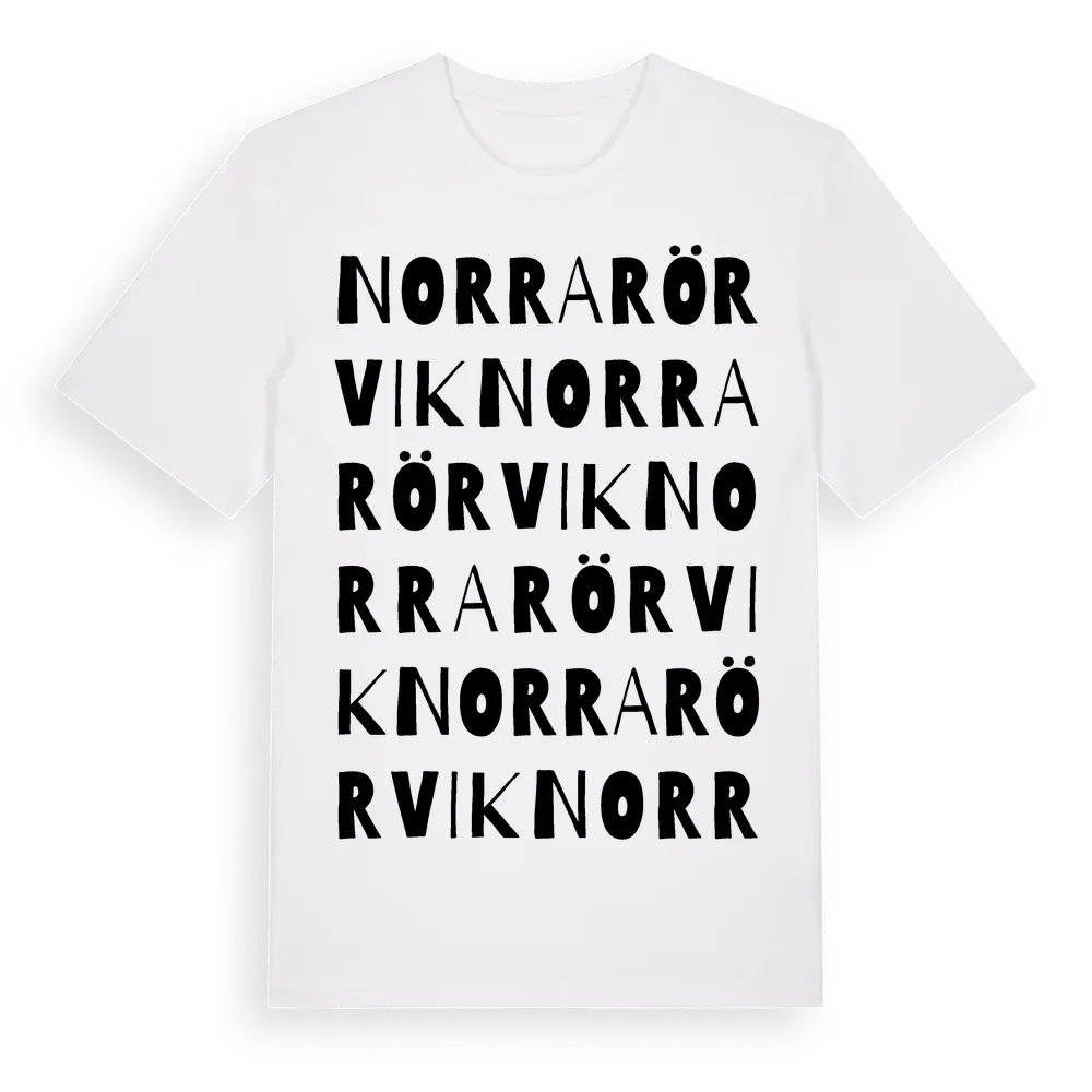 Norra Rörvik ordlek t-shirt är inspirerad av byn Norra Rörvik i Stockholms län, Sverige. Tröjan är designad för dig som har en speciell koppling till platsen – oavsett om du bor här, har rötterna här eller bara älskar Norra Rörvik.