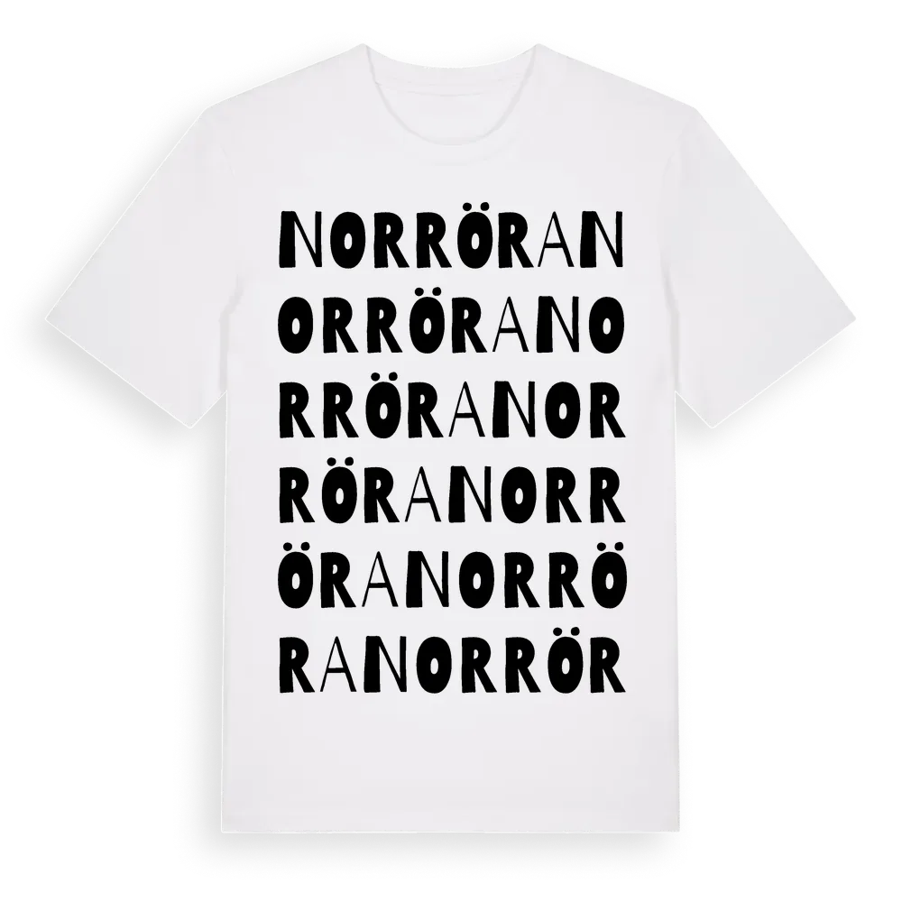 Norröra ordlek t-shirt är inspirerad av ön Norröra i Stockholms län, Sverige. Tröjan är designad för dig som har en speciell koppling till platsen – oavsett om du bor här, har rötterna här eller bara älskar Norröra.