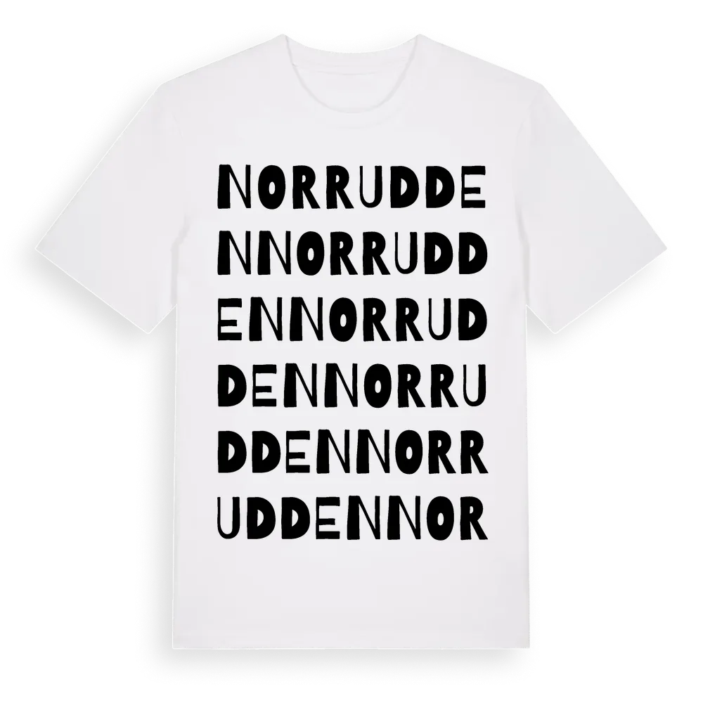 Norrudden ordlek t-shirt är inspirerad av byn Norrudden i Stockholms län, Sverige. Tröjan är designad för dig som har en speciell koppling till platsen – oavsett om du bor här, har rötterna här eller bara älskar Norrudden.