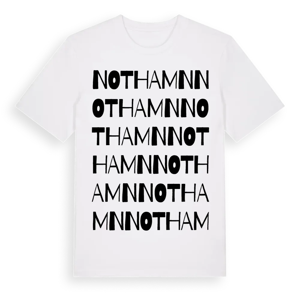 En ordlek byggd på Nothamns namn. Subtilt och klurig – ett motiv som bara de som verkligen känner platsen fullt ut förstår. Premium bomull, unisex – från byn Nothamn i Stockholms län.