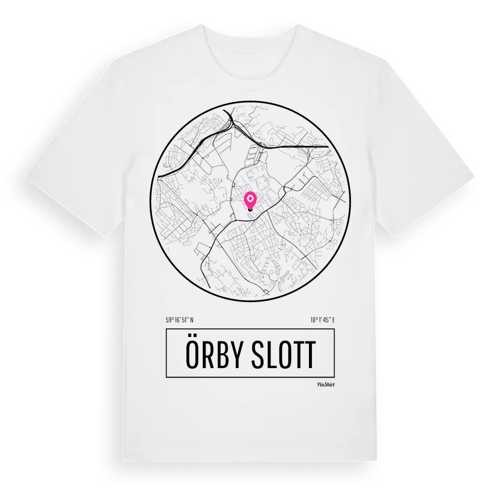 Örby Slott t-shirt är inspirerad av stadsdelen Örby Slott i Stockholms län, Sverige. Tröjan är designad för dig som har en speciell koppling till platsen – oavsett om du bor här, har rötterna här eller bara älskar Örby Slott.