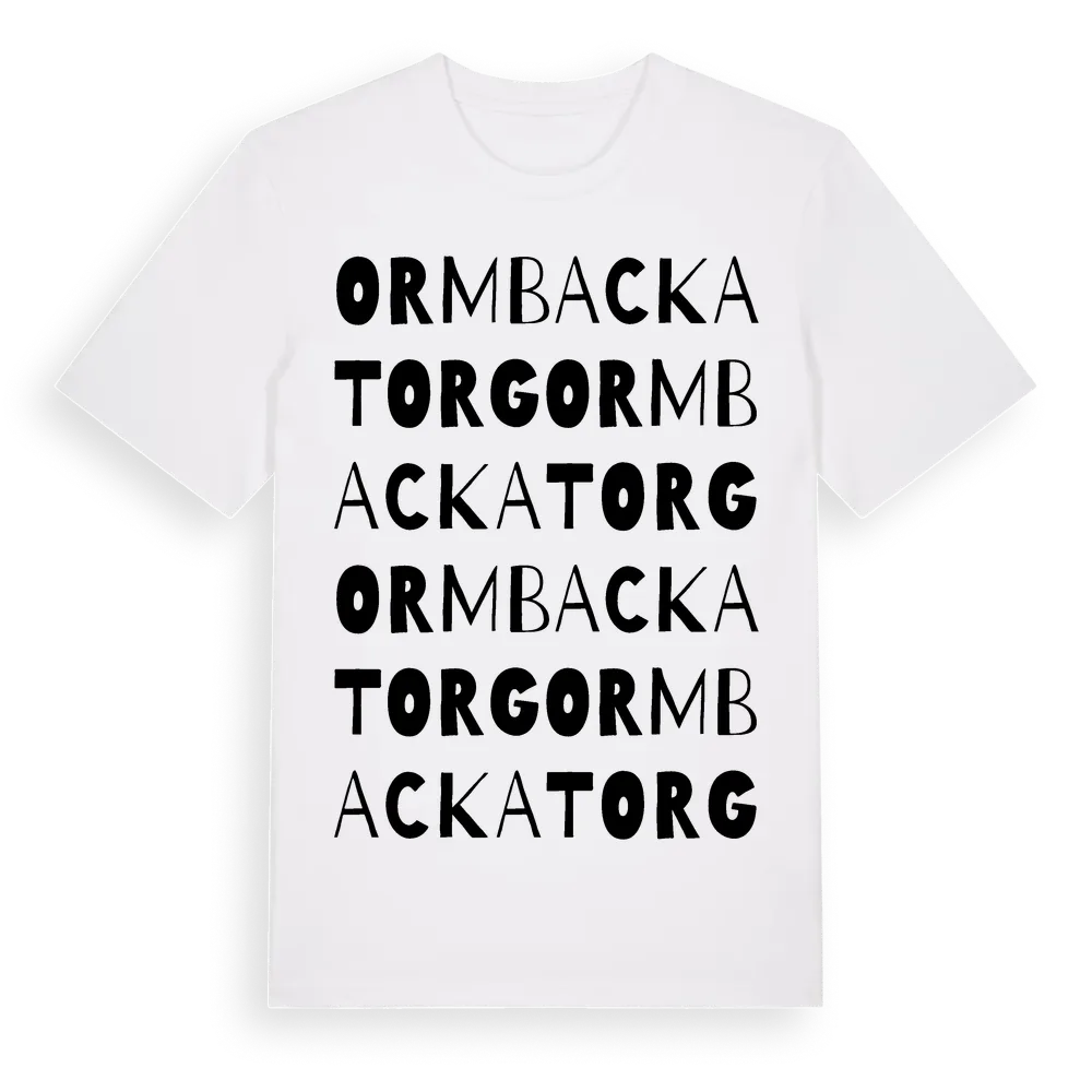 Ormbacka Torg ordlek t-shirt är inspirerad av Ormbacka Torg i Stockholms län, Sverige. Tröjan är designad för dig som har en speciell koppling till platsen – oavsett om du bor här, har rötterna här eller bara älskar Ormbacka Torg.