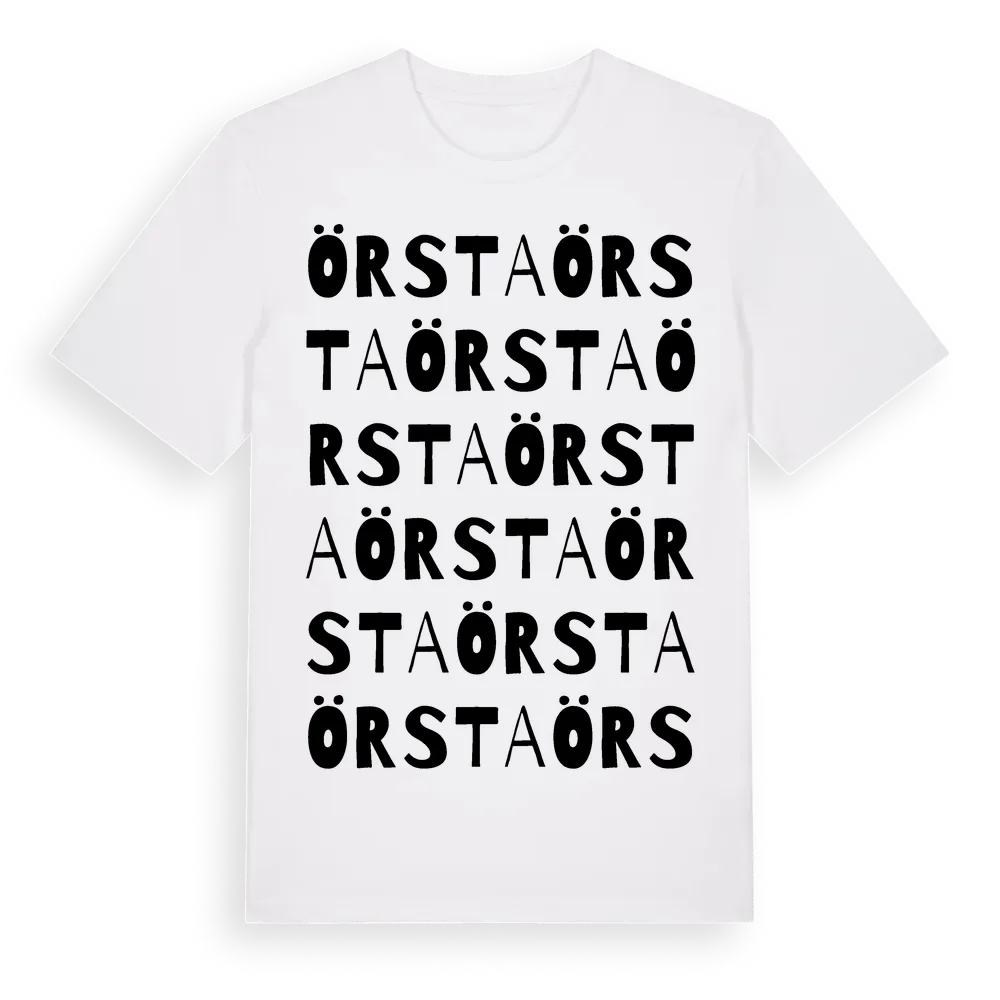 Örsta ordlek t-shirt är inspirerad av Örsta i Stockholms län, Sverige. Tröjan är designad för dig som har en speciell koppling till platsen – oavsett om du bor här, har rötterna här eller bara älskar Örsta.