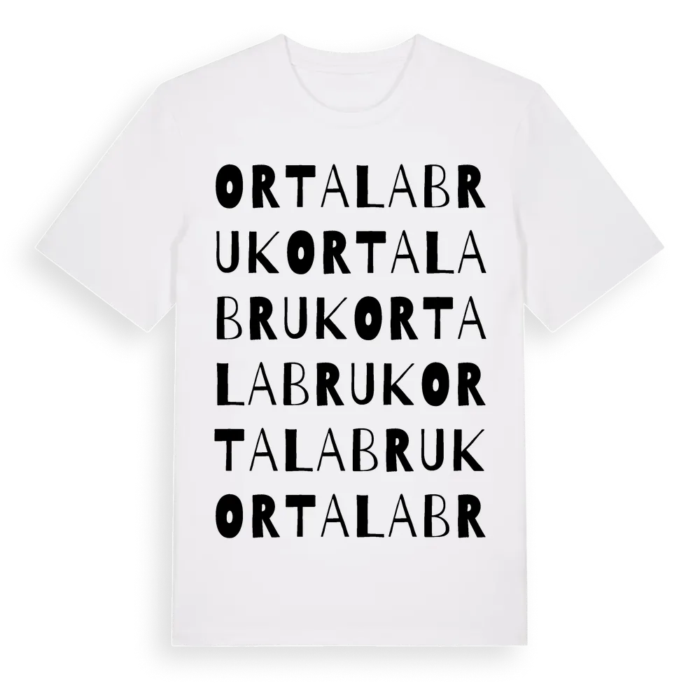 En ordlek byggd på Ortala Bruks namn. Subtilt och klurig – ett motiv som bara de som verkligen känner platsen fullt ut förstår. Premium bomull, unisex – från Ortala Bruk i Stockholms län.