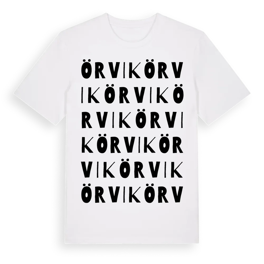 En ordlek byggd på Örviks namn. Subtilt och klurig – ett motiv som bara de som verkligen känner platsen fullt ut förstår. Premium bomull, unisex – från byn Örvik i Stockholms län.