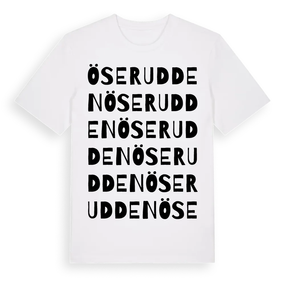Öserudden ordlek t-shirt är inspirerad av Öserudden i Stockholms län, Sverige. Tröjan är designad för dig som har en speciell koppling till platsen – oavsett om du bor här, har rötterna här eller bara älskar Öserudden.