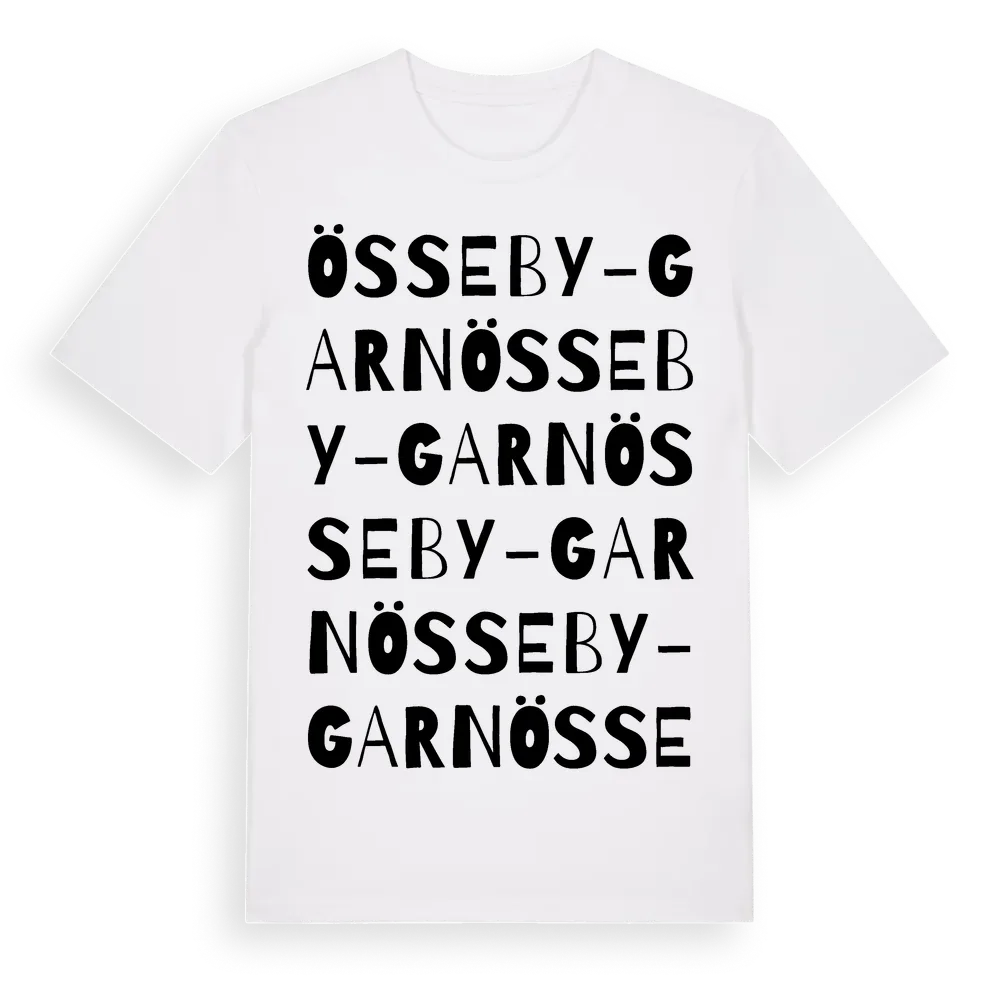 En ordlek byggd på Össeby-Garns namn. Subtilt och klurig – ett motiv som bara de som verkligen känner platsen fullt ut förstår. Premium bomull, unisex – från byn Össeby-Garn i Stockholms län.