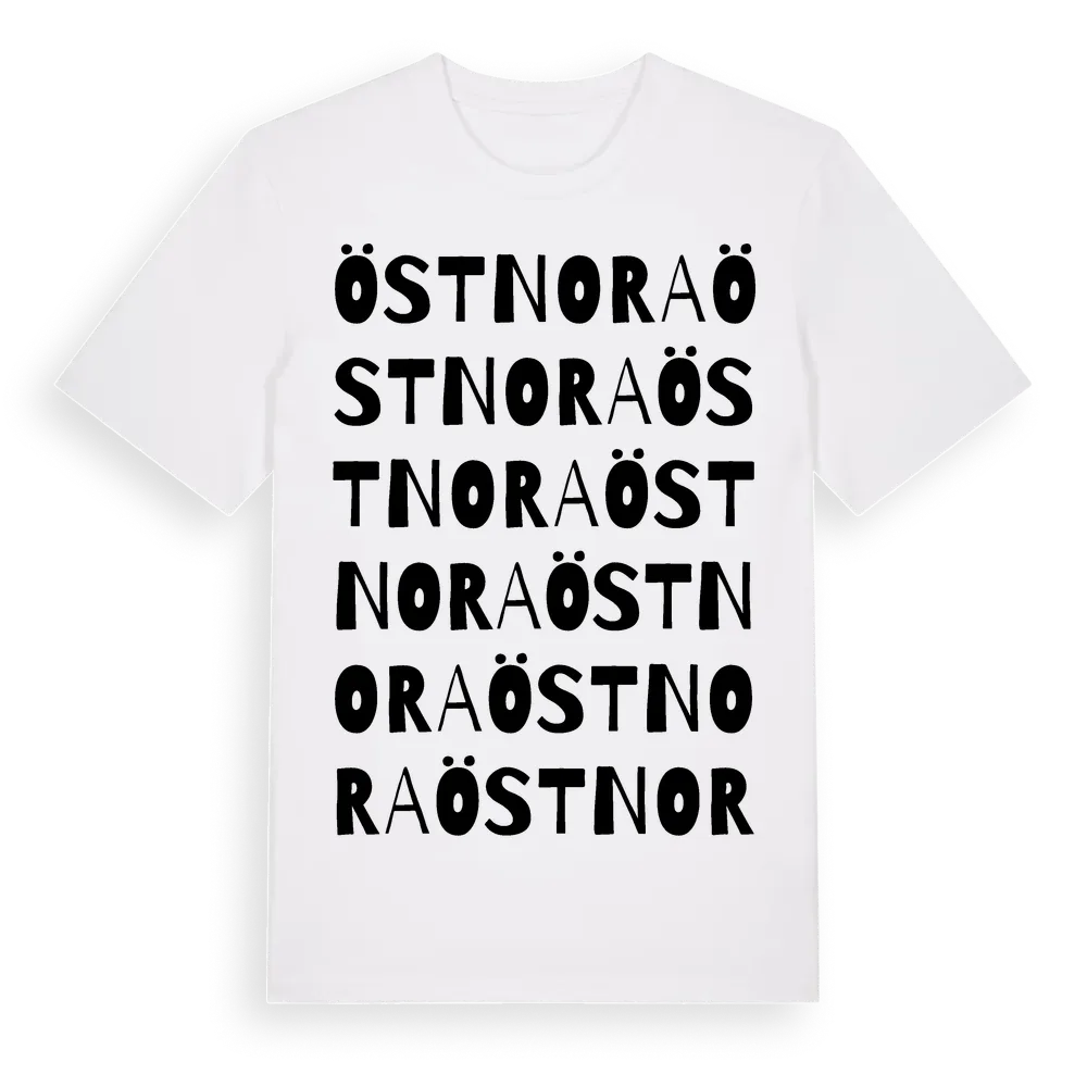 Östnora ordlek t-shirt är inspirerad av byn Östnora i Stockholms län, Sverige. Tröjan är designad för dig som har en speciell koppling till platsen – oavsett om du bor här, har rötterna här eller bara älskar Östnora.