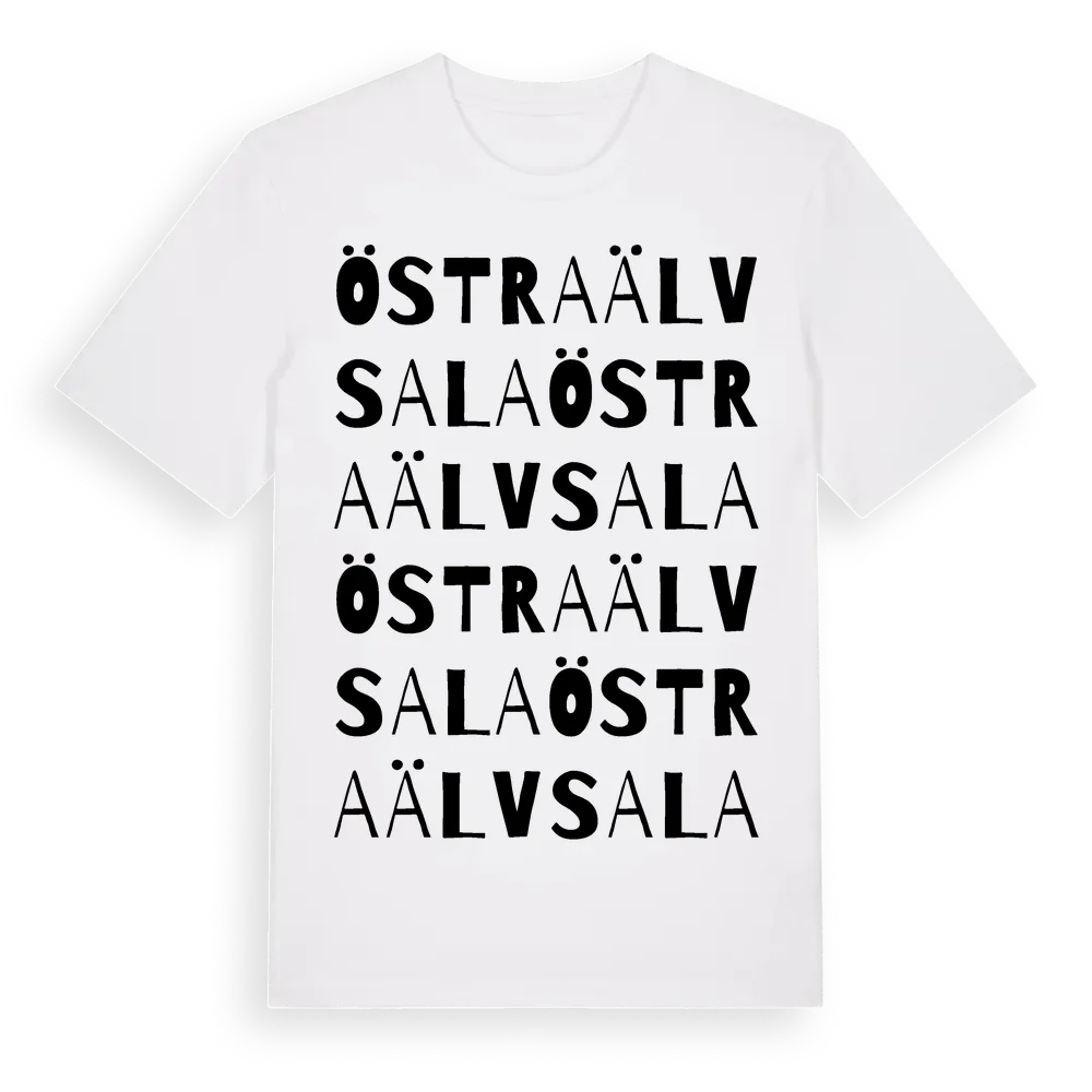 Östra Älvsala ordlek t-shirt är inspirerad av byn Östra Älvsala i Stockholms län, Sverige. Tröjan är designad för dig som har en speciell koppling till platsen – oavsett om du bor här, har rötterna här eller bara älskar Östra Älvsala.
