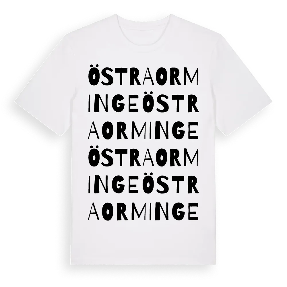 En ordlek byggd på Östra Orminges namn. Subtilt och klurig – ett motiv som bara de som verkligen känner platsen fullt ut förstår. Premium bomull, unisex – från stadsdelen Östra Orminge i Stockholms län.