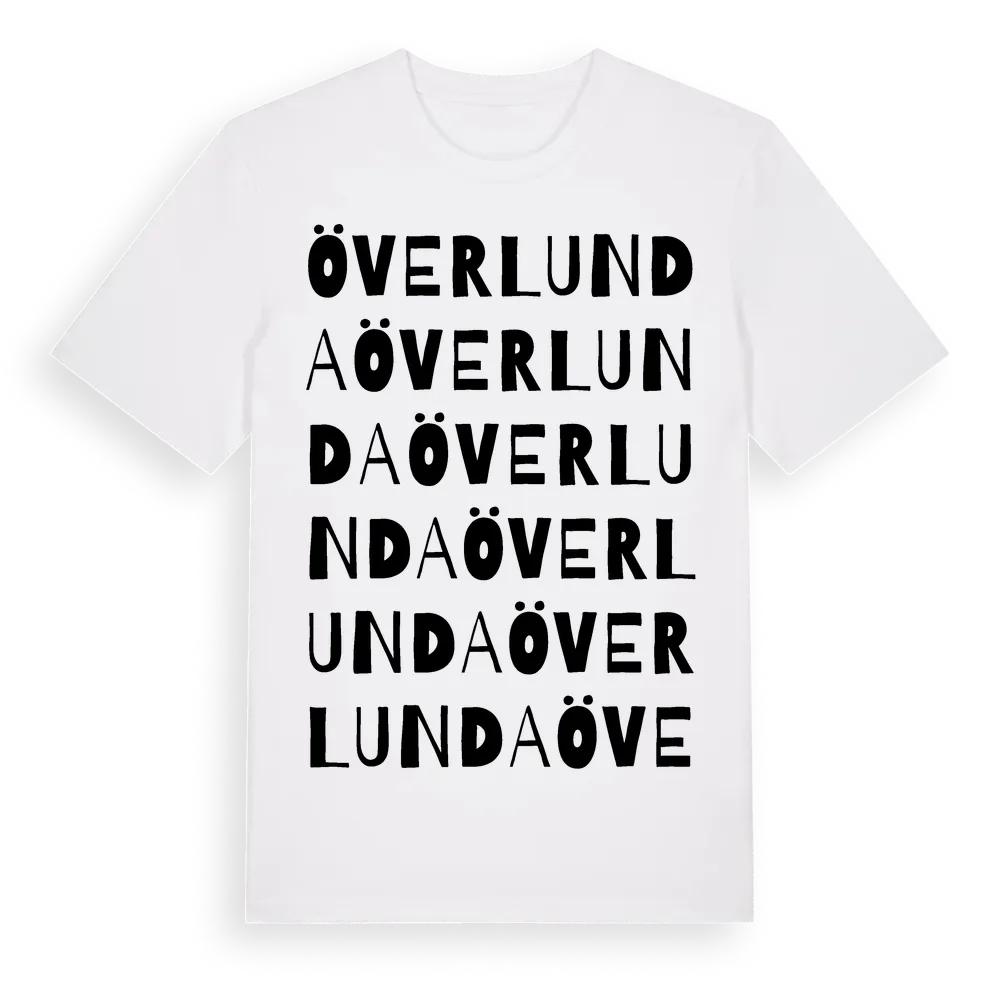 Överlunda ordlek t-shirt är inspirerad av Överlunda i Stockholms län, Sverige. Tröjan är designad för dig som har en speciell koppling till platsen – oavsett om du bor här, har rötterna här eller bara älskar Överlunda.