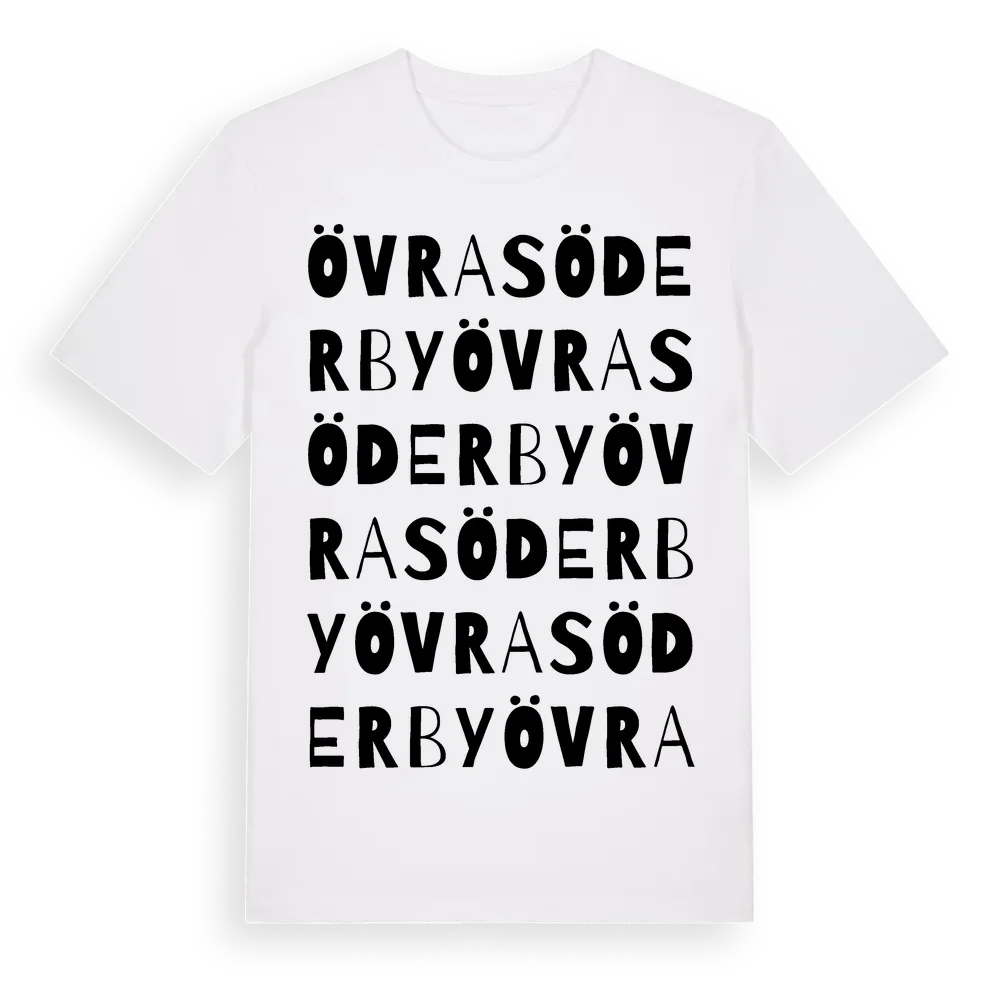 Övra Söderby ordlek t-shirt är inspirerad av byn Övra Söderby i Stockholms län, Sverige. Tröjan är designad för dig som har en speciell koppling till platsen – oavsett om du bor här, har rötterna här eller bara älskar Övra Söderby.