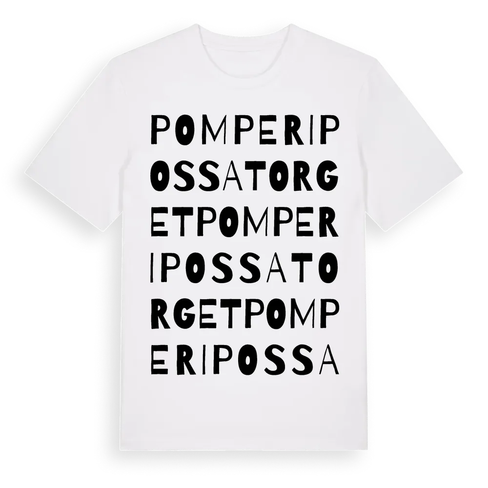En ordlek byggd på Pomperipossatorgets namn. Subtilt och klurig – ett motiv som bara de som verkligen känner platsen fullt ut förstår. Premium bomull, unisex – från Pomperipossatorget i Stockholms län.