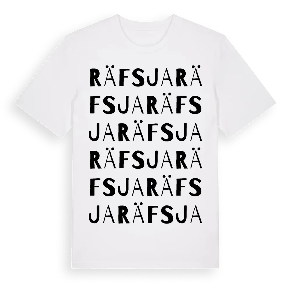Räfsja ordlek t-shirt är inspirerad av Räfsja i Stockholms län, Sverige. Tröjan är designad för dig som har en speciell koppling till platsen – oavsett om du bor här, har rötterna här eller bara älskar Räfsja.