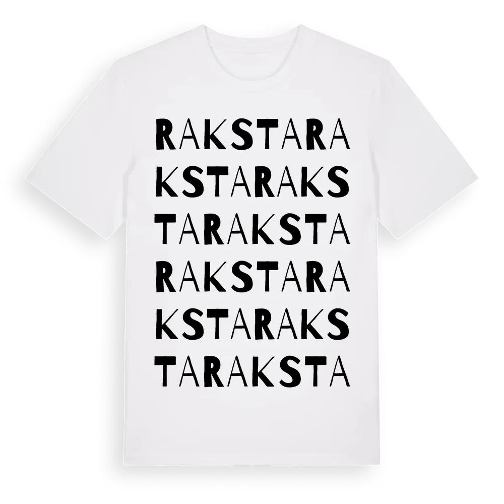 Raksta ordlek t-shirt är inspirerad av byn Raksta i Stockholms län, Sverige. Tröjan är designad för dig som har en speciell koppling till platsen – oavsett om du bor här, har rötterna här eller bara älskar Raksta.