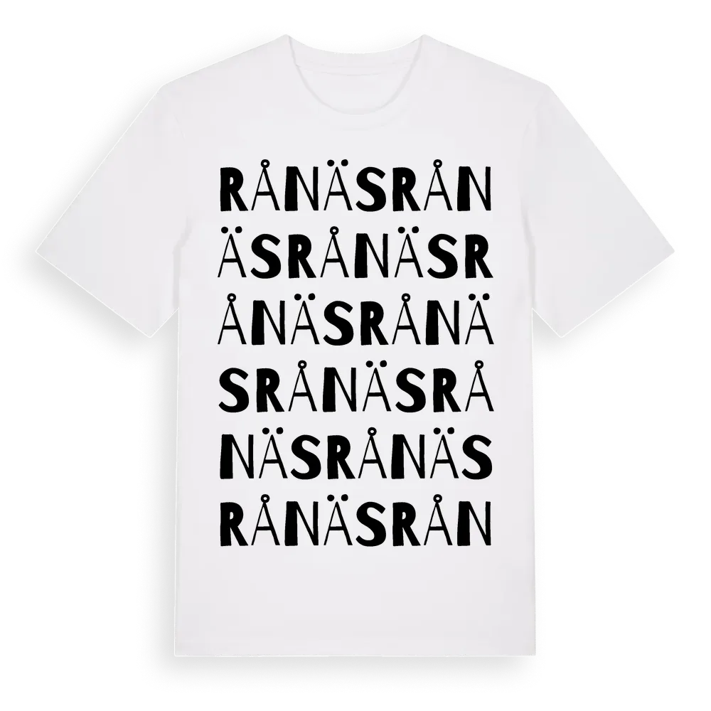 Rånäs ordlek t-shirt är inspirerad av byn Rånäs i Stockholms län, Sverige. Tröjan är designad för dig som har en speciell koppling till platsen – oavsett om du bor här, har rötterna här eller bara älskar Rånäs.