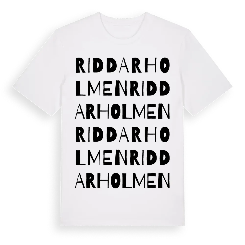 En ordlek byggd på Riddarholmens namn. Subtilt och klurig – ett motiv som bara de som verkligen känner platsen fullt ut förstår. Premium bomull, unisex – från Riddarholmen i Stockholms län.