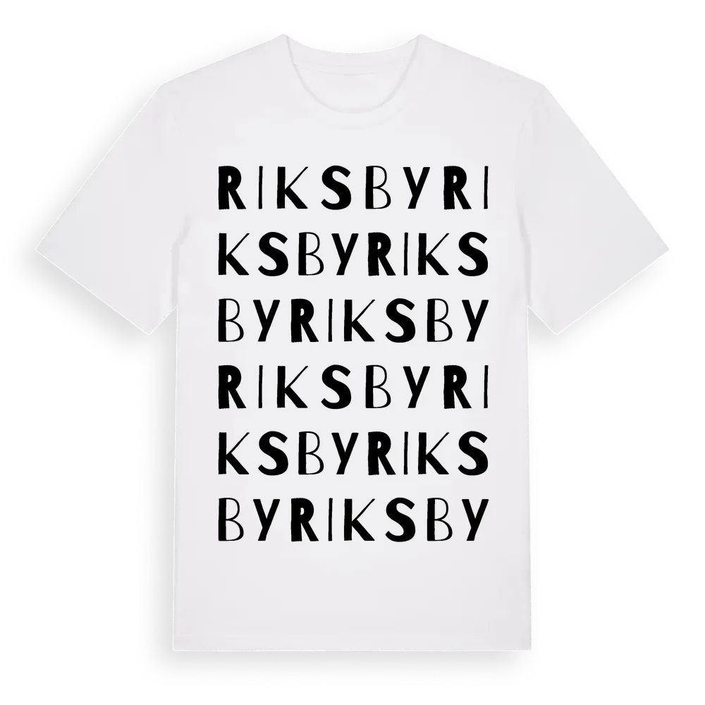 En ordlek byggd på Riksbys namn. Subtilt och klurig – ett motiv som bara de som verkligen känner platsen fullt ut förstår. Premium bomull, unisex – från stadsdelen Riksby i Stockholms län.