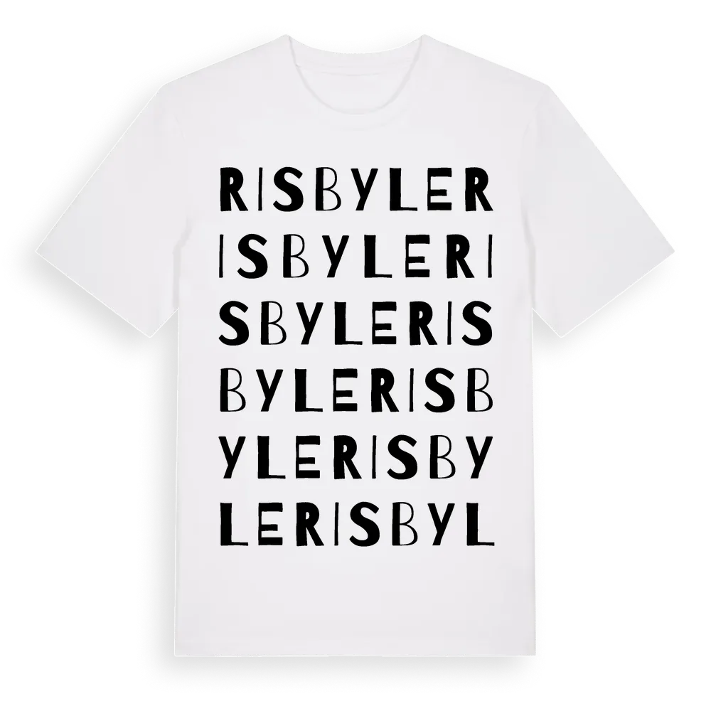 En ordlek byggd på Risbyles namn. Subtilt och klurig – ett motiv som bara de som verkligen känner platsen fullt ut förstår. Premium bomull, unisex – från Risbyle i Stockholms län.