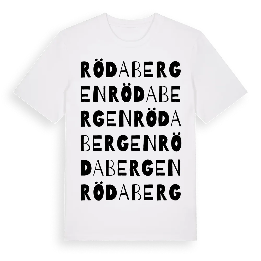 Röda Bergen ordlek t-shirt är inspirerad av stadsdelen Röda Bergen i Stockholms län, Sverige. Tröjan är designad för dig som har en speciell koppling till platsen – oavsett om du bor här, har rötterna här eller bara älskar Röda Bergen.