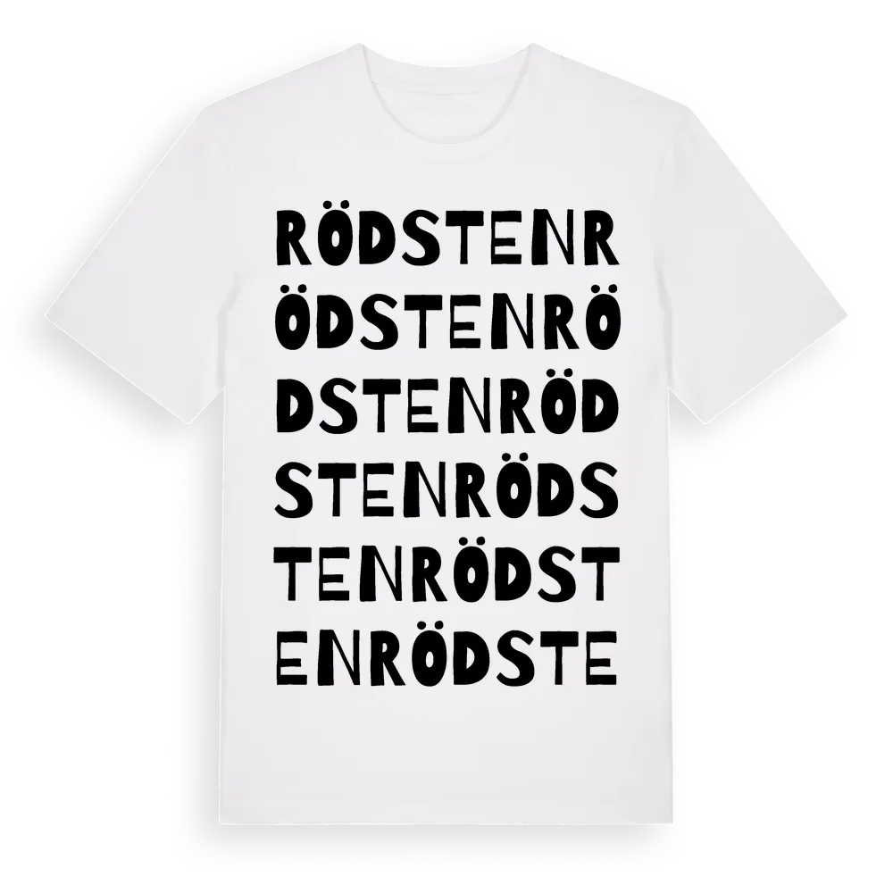 Rödsten ordlek t-shirt är inspirerad av Rödsten i Stockholms län, Sverige. Tröjan är designad för dig som har en speciell koppling till platsen – oavsett om du bor här, har rötterna här eller bara älskar Rödsten.