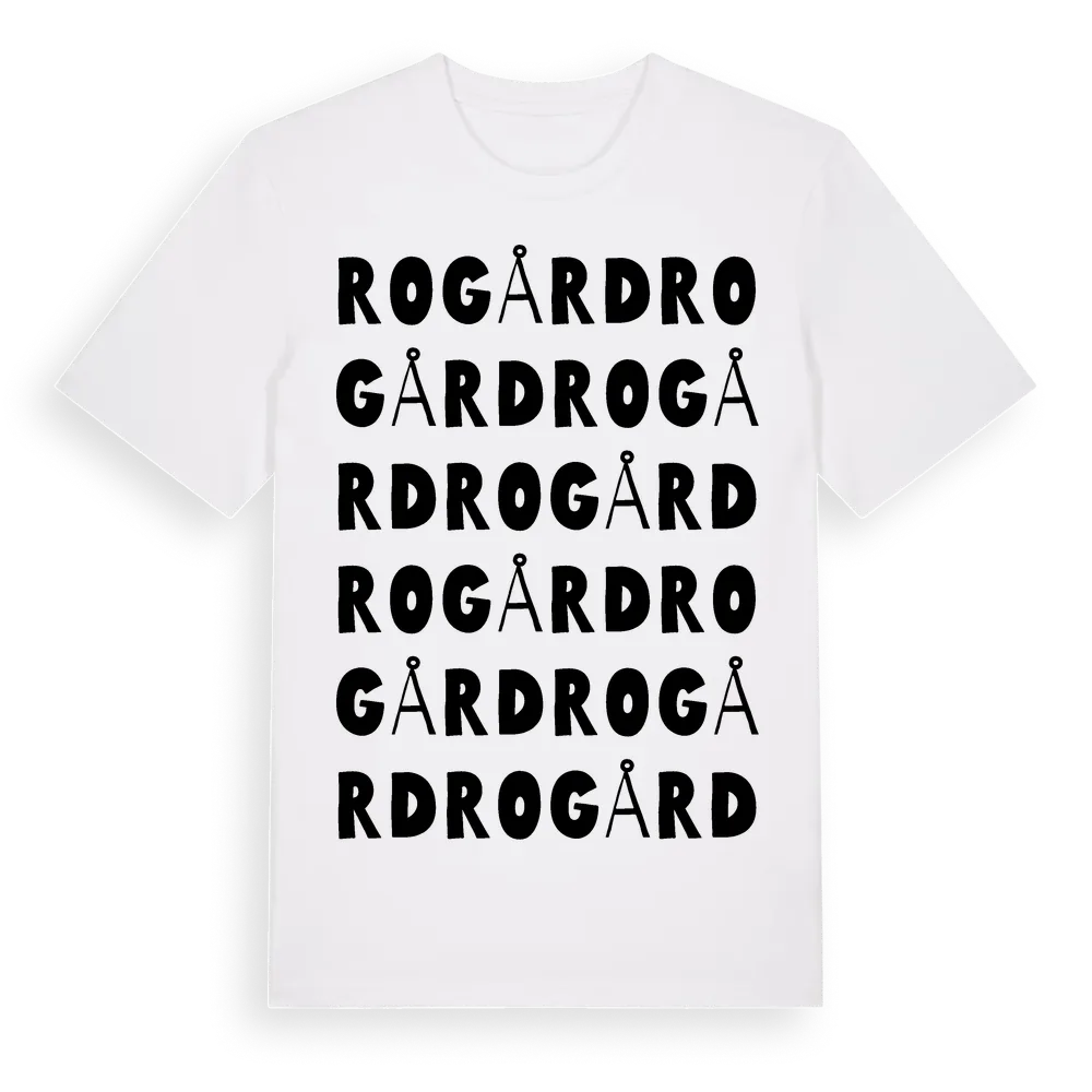 Rogård ordlek t-shirt är inspirerad av Rogård i Stockholms län, Sverige. Tröjan är designad för dig som har en speciell koppling till platsen – oavsett om du bor här, har rötterna här eller bara älskar Rogård.