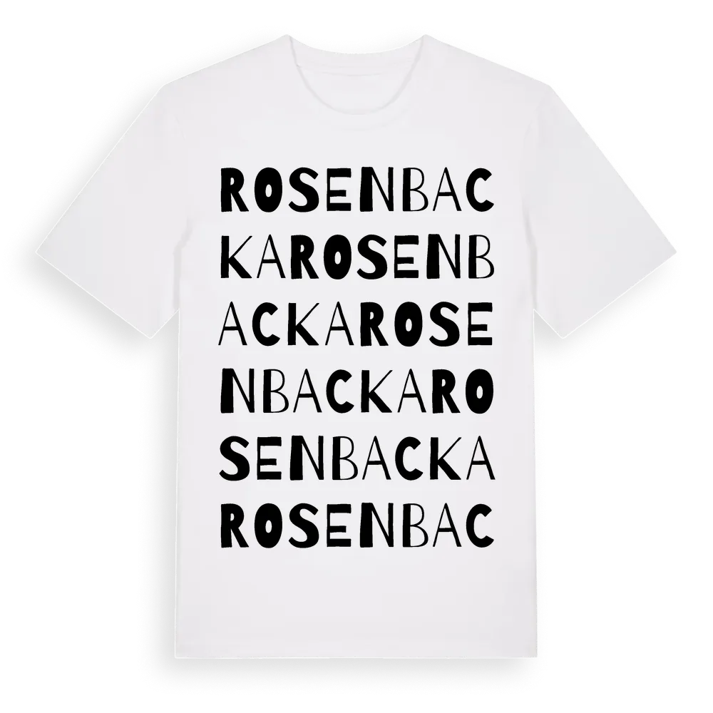 Rosenbacka ordlek t-shirt är inspirerad av Rosenbacka i Stockholms län, Sverige. Tröjan är designad för dig som har en speciell koppling till platsen – oavsett om du bor här, har rötterna här eller bara älskar Rosenbacka.