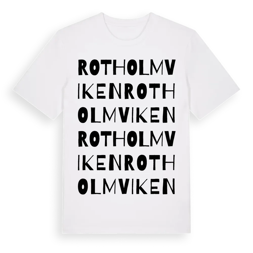 Rotholmviken ordlek t-shirt är inspirerad av byn Rotholmviken i Stockholms län, Sverige. Tröjan är designad för dig som har en speciell koppling till platsen – oavsett om du bor här, har rötterna här eller bara älskar Rotholmviken.