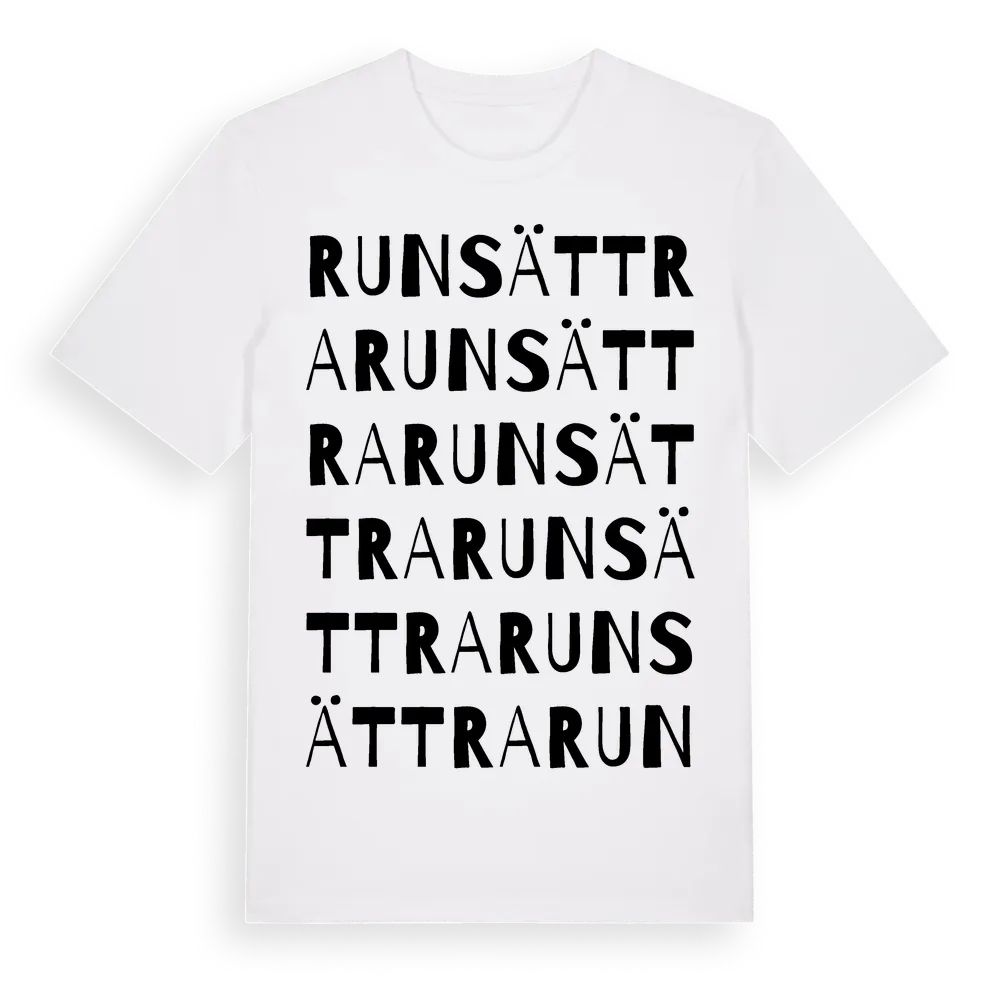 Runsättra ordlek t-shirt är inspirerad av Runsättra i Stockholms län, Sverige. Tröjan är designad för dig som har en speciell koppling till platsen – oavsett om du bor här, har rötterna här eller bara älskar Runsättra.
